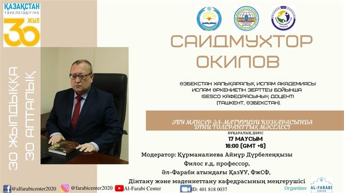 The organizer of the public lecture is the Al-Farabi Center. The lecture was held online on the ZOOM platform.