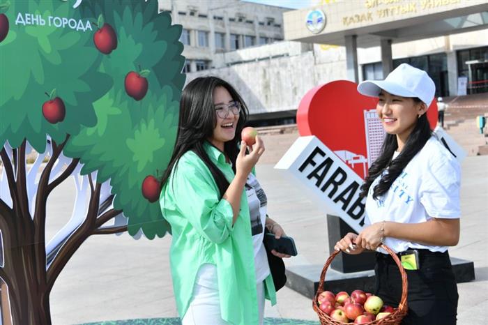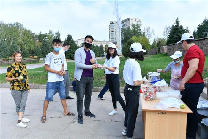 Youth organizations took part in the festive fair Alma Fest. As part of the event, volunteers handed out T-shirts and caps with KazNU symbols to the guests. The guests of the festival were treated to delicious pilaf and aromatic apples. At the stadium of the sports complex of the university, gambling competitions, a beach volleyball and football tournament were held without spectators. The best players showed their capabilities and measured their strength. The most agile and strongest became the winners of the competition. The guests and students also visited the cinema, which was organized in the Al-Farabi library for 30 seats, taking into account the sanitary and epidemiological requirements. They were offered the film "Otyrardy Korgau" made by the film studio "Sag" and the cartoon "Trainee". The festival ended with an online concert "Almaty in my heart", where musical groups, singers and dancers of the university demonstrated their talents.