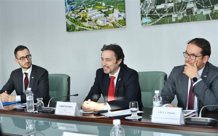 The rector of the university, having greeted the Italian ambassador, spoke about the activities of the university, the achievements of the strategic partnership of universities of the two countries and introduced the program and projects in the scientific and educational sphere.
