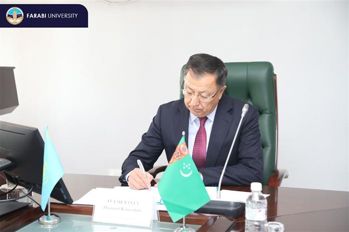 Today, the Al-Farabi Kazakh National University signed bilateral memorandums of mutually beneficial cooperation with the Institute of International Relations of the Ministry of Foreign Affairs of Turkmenistan and the State University named after Makhtumkuly of this country.