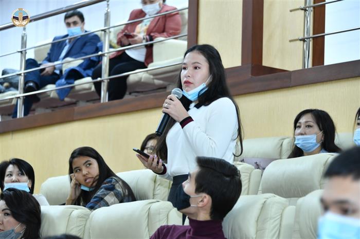 In a lively, fascinating form, the lecturer told about the difficult years of post-Soviet devastation in the country, when the country was literally created bit by bit, the legislative framework was developed, reforms were introduced, and it was necessary to restore the economy. How many forces were spent by the best minds of the country, led by the First President N.A. Nazarbayev, to establish foreign policy ties with other countries, the flow of foreign investment in the economy, create a national currency and lay the foundations of statehood. And the country's leading university has always been at the forefront of this process, being a forge of personnel, providing all areas of activity with qualified specialists who made the glory of the country and the university. “As economists, you must have the strongest strategic analysis,” the speaker emphasized. - Ability to think critically, process a huge amount of information, analyze in order to assess and identify the strengths and weaknesses of the economy, take into account mistakes and do everything so that, taking into account experience, do not commit them in the future. Specialists with a command of strategic analysis are a national treasure! Political economy is a comprehensive area in which you need to stay 24 hours a day in order to always be “on the front line”, in the know with all the news, to be able to analyze, foresee and plan. ”The audience showed great interest in the meaningful, bright and fact-packed lecture. By asking questions, they thanked the lecturer and actively participated in the discussion.