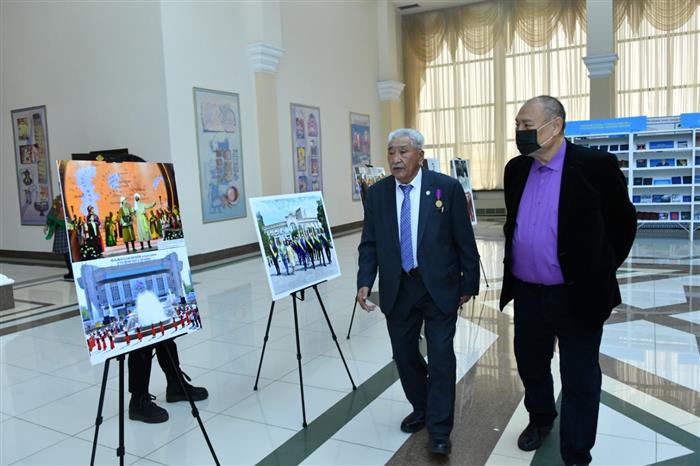 The event was attended by: Dean of the Faculty of Journalism Sansyzbay Madiev, Honored Artist of the Republic of Kazakhstan, Laureate of the State Prize of the Republic of Kazakhstan, Knight of the Ormet Order, actor Aydos Bektemir, People's Artist of Kazakhstan, member of the USSR Union of Cinematographers, Laureate of the State Prize of the USSR, actor Nurzhuman Yktymbaev, head of the department Akimat of Almaty, public figure Zhanna Magulova, member of the Union of Composers of Kazakhstan, teacher of the Kazakh National Conservatory named after Kurmangazy Beibit Daldenbaev, entrepreneur-philanthropist Bakytbek Manapov, head of the Museum of the Kazakh State Academic Drama Theater named after M. Auezova Nargiz Tamabekovna, culture worker of the Republic of Kazakhstan, singer Bauyrzhan Kumarbekov. The guests shared their impressions of the exhibition.