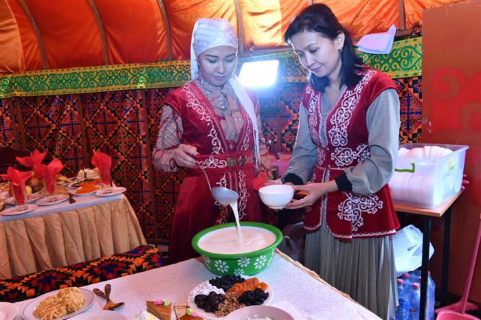 In continuation of the holiday, the guests were invited to the colorful Zhastar auyly yurt, where they could taste pilaf, nauryz-kozhe and other treats.