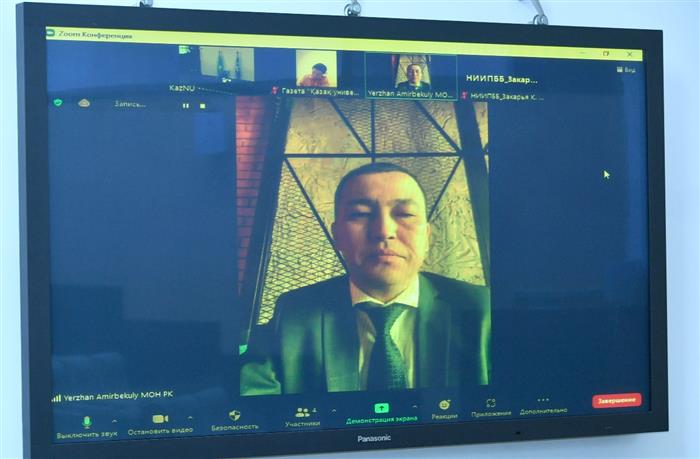 Yerzhan Amirbekuly, Deputy Director of the Department of Higher and Postgraduate Education, spoke at the online meeting.