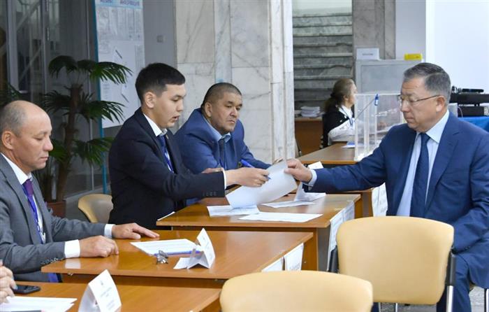 Mr. Zhanseit Tuimebayev, Chairman of the Board - Rector of Al-Farabi Kazakh National University, was the first to cast his vote at polling station 259.