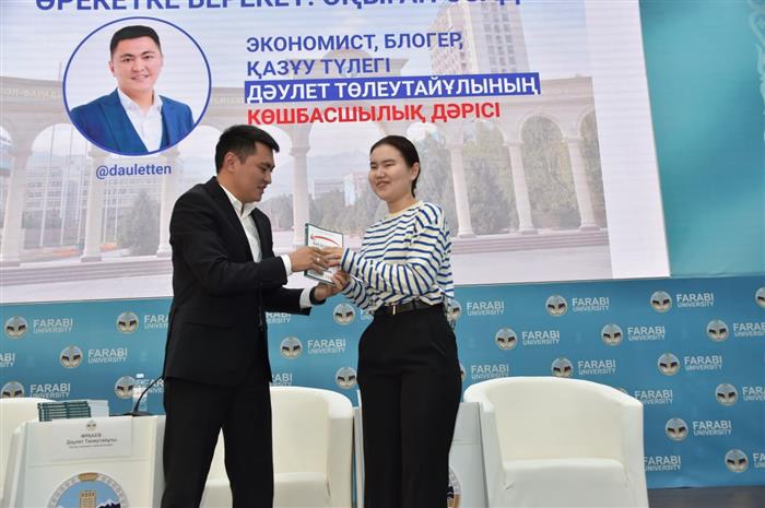 A popular blogger, social activist, and economist Daulet Mukayev gave a leadership lecture on the topic: "Act for Good: An Educated One is Always Ahead" at the Al-Farabi Kazakh National University.