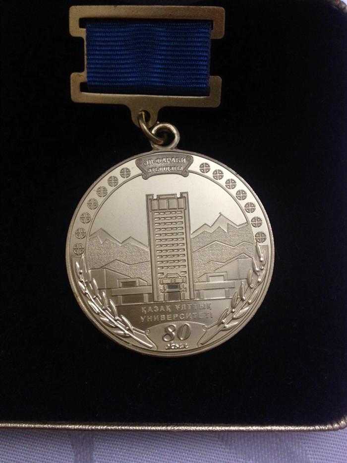 PhD doctor Tovma N.A. awarded a diploma "The best young scientist" and Gold medal by rector of KazNU Mutanov G.M. 15 April 2016 year |