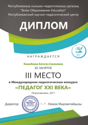 Teacher of Department "Accounting and Audit" Kishibaeva B.S. won 3rd prize place in International competition of Teachers named "Teacher of XXI century" 15 February 2016 year |