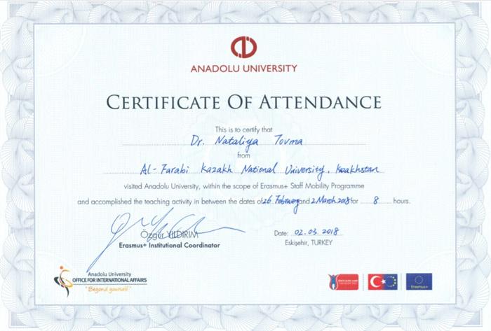PhD Doctor of the Department Tovma N.A. participated in Forum Erasmus in Turkey 02 March 2018 year |