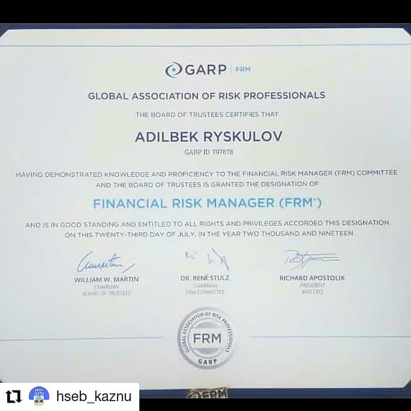 1-year doctoral student in the educational program "Islamic Finance", AIFC certified coach Adilbek Ryskulov became the owner of FRM |