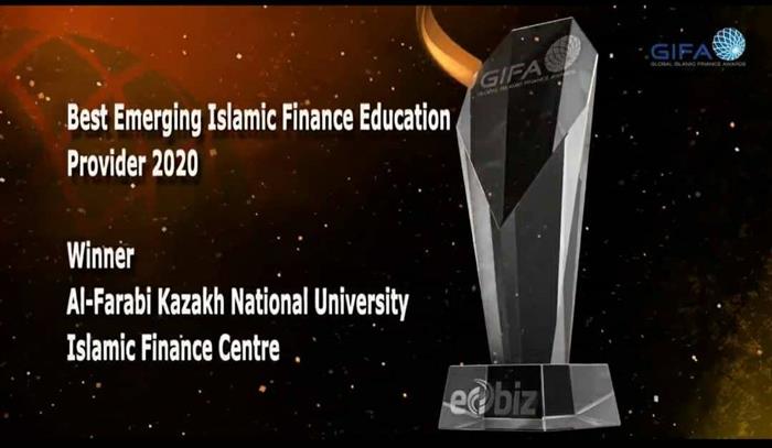 On September 14, 2020, the 10th Global Islamic Finance Awards 2020 ceremony was held, for the best institutions and individuals, for achievements and contributions to the development and expansion of the Islamic banking and financial industry. The award ceremony was held in the city of Islamabad, Islamic Republic of Pakistan.The Research and Education Center for Islamic Finance of the Kazakh National University named after al-Farabi was awarded as the winner in the nomination for the Best Emerging Islamic Finance Education Provider 2020. |