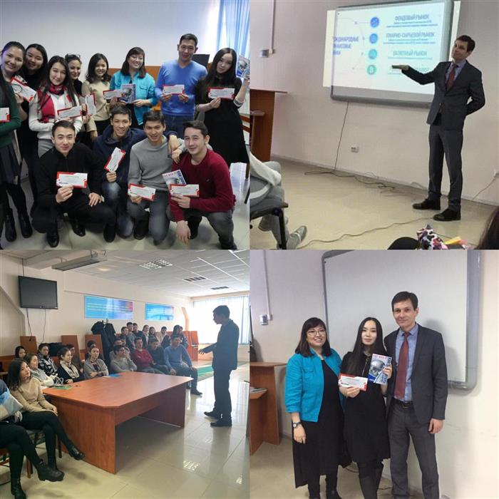 The training, held in Kazakh National University on 29-th February, was devoted for students of the Higher School of Economics and Business. The senior analyst of Wall Street Invest Partners, Taishev Rustam Ergebekovich, gave information about prognostication of risks and their minimization at the financial market. Additionally, he informed students about the increase of trust of foreign investors for investments in securities of Kazakhstan and development of financial sphere.