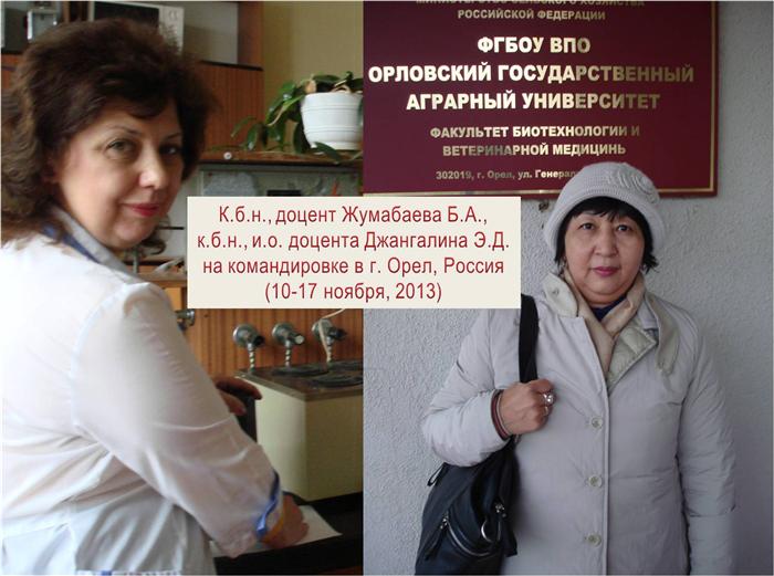 In 2012-2013 academic year on MES RK grant "Best university teacher 2011" funding Prof. Kolumbayeva S.Zh. visited and participated in seminars at the University of Vienna, Autsria and Pierre et Marie Currie, France; under the funding of the Russian fund of fundamental researches Assistant Prof. Zhunusbayeva Zh.K. and Dauletbayeva S.B. (additionally November, 2013) were on scietific training at the Tomsk University, Russia; Assist. Prof. Zhussupova A.I. (Fulbright, MN) and Rysbekova A.B. (Bolashak, IN) were a yearly training at two leading universities in USA. In 2013-2014 academic year on MES RK projects were Prof. Kolumbayeva S.Zh. (Valencia Polytechnical University, Spain); Assoc. Prof. Dzhangalina E.D. and Zhumabayeva B.A. in Orlovsk State Agrarian University, Russia.