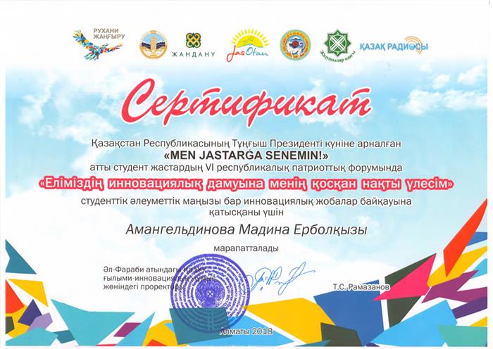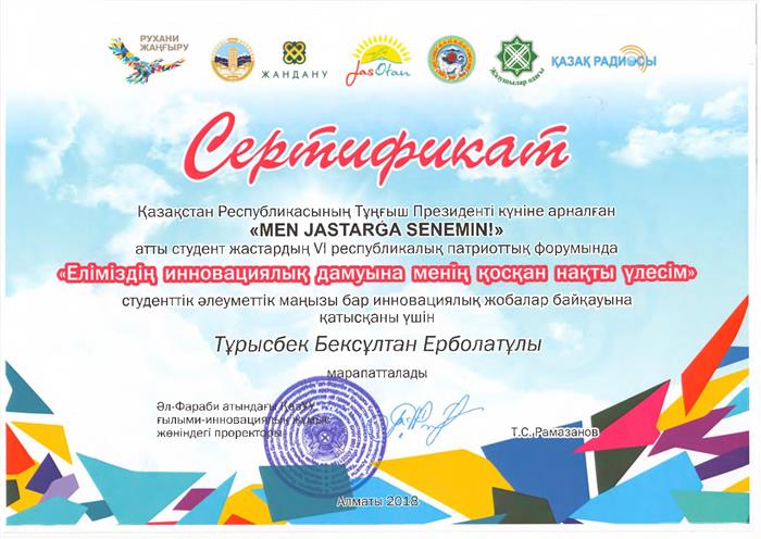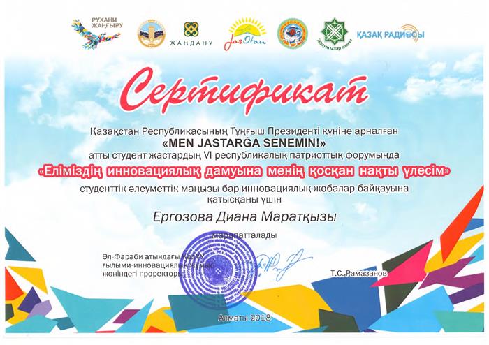 CERTIFICATE Sapargalieva Nazym 2015 y.