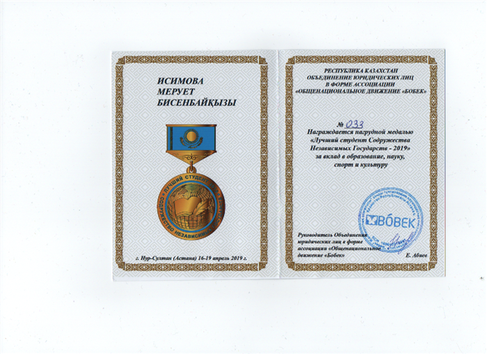 In 2014-2015, the "best undergraduate Edition" is awarded to the publisher, "Kazakh University" for the book in the Kazakh language "Invertebrate Zoology" and "Vertebrate Zoology" |