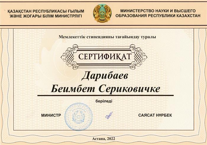 Daribaev Beimbet Serikovich - doctor PhD, Head of Department computer science. Winner in 2022nominal awards in the field of sciences andstate scientific scholarships. |