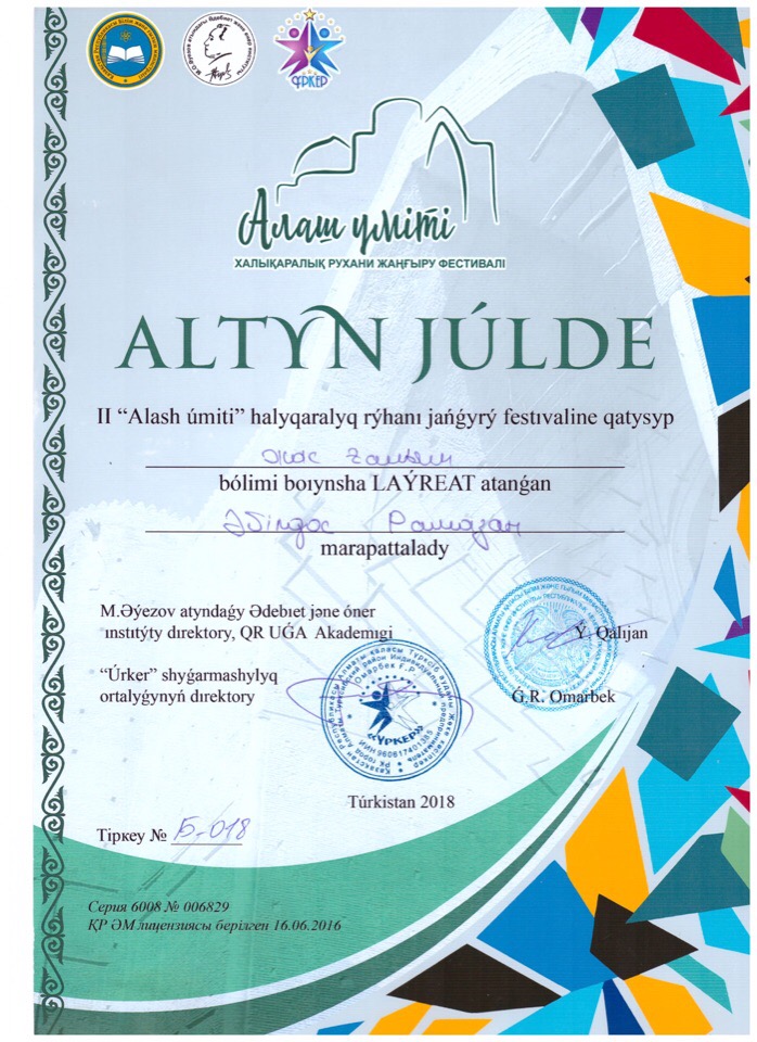 II nomination at the international festival in the framework of the program "Ruhani zahyru" |