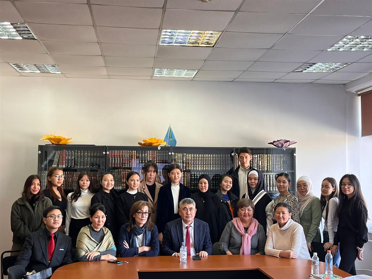 20 қазан 2022 ж. эдвайзерлер мен оқытушылар Жұмажанова Ф.Т., Қалиева Ш.С., Жиекбаева А.Б., Хаван А., Жумадилова А.Е., Мұқашев А.Е. және Шығыстану факультеті Таяу Шығыс және Оңтүстік Азия кафедрасының бакалавриат студенттері «Нұр-Мүбарак» Египет ислам мәдениеті университеті жанындағы «Әбу Ханифа» ғылыми-зерттеу орталығының директоры, профессор Шамшадин Тұрсынұлы Керіммен кездесу өткізді.