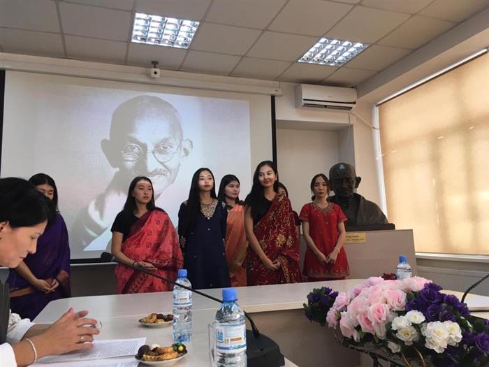 2018 жылдың 3 қазан күні Әл-Фараби атындағы Қазақ Ұлттық Университетінің Шығыстану факультетінің үндістану бөлімі Үндістанның саяси қайраткері, «Ұлт Әкесі» Махатма Гандидің туған күніне арналған іс-шара өткізді.
