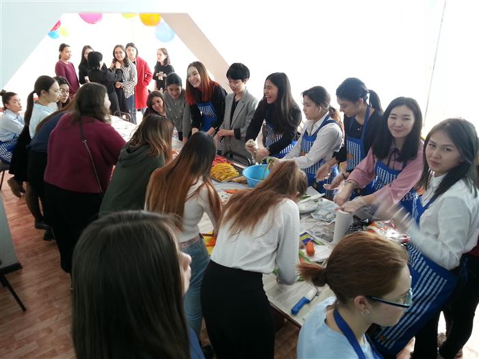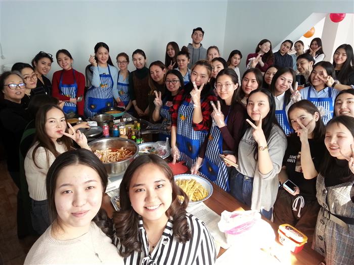 Қиыр Шығыс кафедрасы студенттерінің құрамында негізінен қыздар саны көбірек. Сондықтан, Оңтүстік Кореядан келген оқытушылардың арасындағы жас мамандардың жыл сайын корей тағамдарын дайындаудан мастер-класс өткізуі кездейсоқтық емес. Корейтану бөлімі өткізген шеберлік сағатында шетелдік оқытушылардың шебер қолдары мен жаңа нәрсені үйренуге әзір тұратын студенттер дайындаған корей тағамдары дастарханда лезде пайда болды.