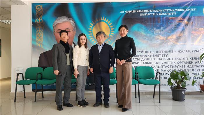 2023 жылдың 17 қаңтарында гуманитарлық мазмұн қоғамының төрағасы (профессор Ким Сан Хон) және басқарма мүшелері әл-Фараби атындағы ҚазҰУ-дың Шығыстану факультетінде болды. Корей делегациясы жалпы саны 5 адамнан тұрды (Қоғам төрағасы, Сангмёнг университетінің профессоры Ким Сан Хон, Сокён университетінің профессоры Бан Ми Ён, Жаһандық киберуниверситетінің профессоры Ли Кон Ун, Қоғамның аға ғылыми қызметкері Ан У Ри). Гуманитарлық мазмұн қоғамы Кореядағы ең ірі академиялық гуманитарлық мазмұн қоғамдарының бірі болып табылады және осы жылы Қоғамның жаңа төрағасы болып профессор Ким Сан Хон сайланды. 20 жыл бұрын 1938-2002 жылдарға арналған «Ленин кичи» және «Корьё Ильбо» газеттерін цифрландыру жобасын жүзеге асырған профессор Ким Сан Хон қазір Қиыр Шығыс кафедрасының докторанты Хамитова Назеркенің(1курс) шетелдік ғылыми жетекшісі. Сапар барысында Шығыстану факультетінің деканы (проф. Ем Н.Б.) және корей делегациясы алдағы уақытта академиялық іс-шаралар мен жобаларды бірлесіп ілгерілету мәселелерін талқылады, сондай-ақ Қазақстандағы мәдени мазмұнды зерттеу әдістемесі арқылы корейтануды дамыту үшін ынтымақтастық туралы егжей-тегжейлі пікірлерін білдірді. Кездесу соңында профессор Ким Сан хон өзінің шәкірті Хамитова Назерке және Белялова Айгериммен (Қазақстан бойынша диссертация жетекшісі) тағы бір кездесу өткізіп, онда болашақта докторантға диссертация дайындау жөнінде салиқалы әңгіме өрбіді.