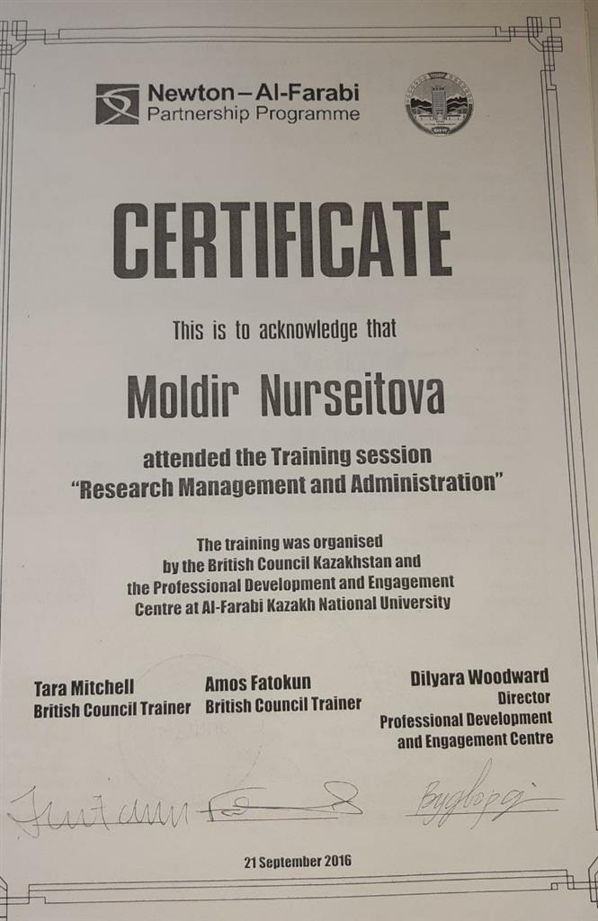 Сертификат “Білім беруді цифрландыру жағдайындағы әл-фараби педагогикалық тұждамасының заманауи интерпретациясы” –атты халықаралық ғылыми-әдістемелік конференция.