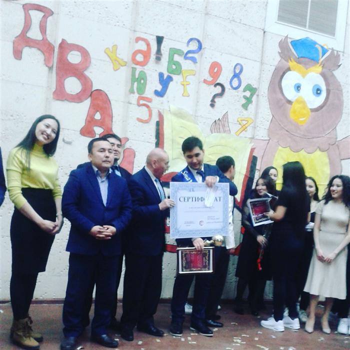 Филология, әдебиеттану және әлем тілдері факультетінің кубогымен футболдан "Орыс тілі және әдебиеті" мамандығы бірінші орын алғаны үшін марапатталды. |