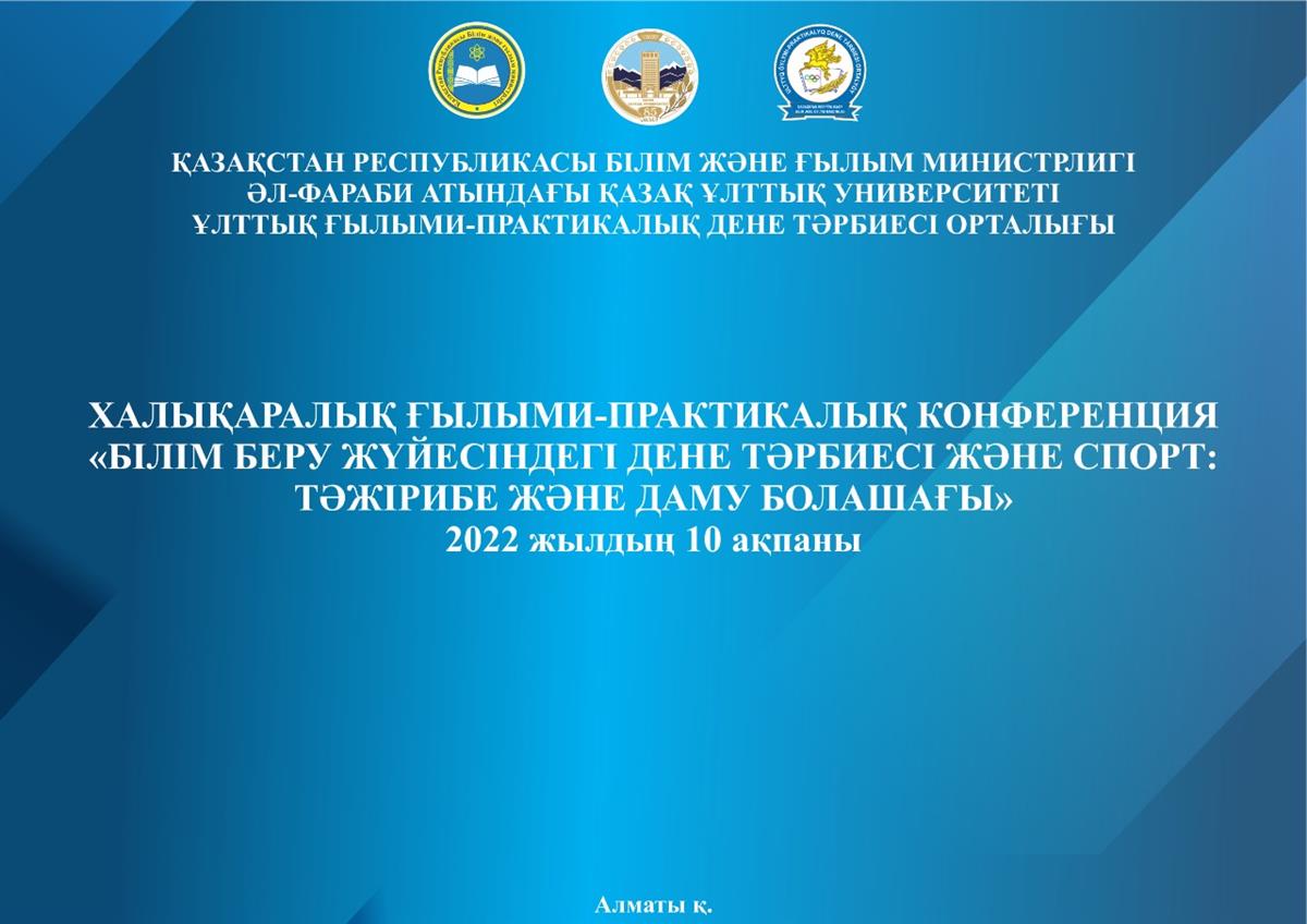 09.02.2022Әл-Фараби атындағы Қазақ ұлттық университетімен бірге Білім және ғылым министрлігінің Ұлттық ғылыми-практикалық дене тәрбиесі орталығы «Білім беру жүйесіндегі дене тәрбиесі және спорт: тәжірибе және даму болашағы» атты халықаралық ғылыми-тәжірибелік конференция өткізуді жоспарлап отыр.