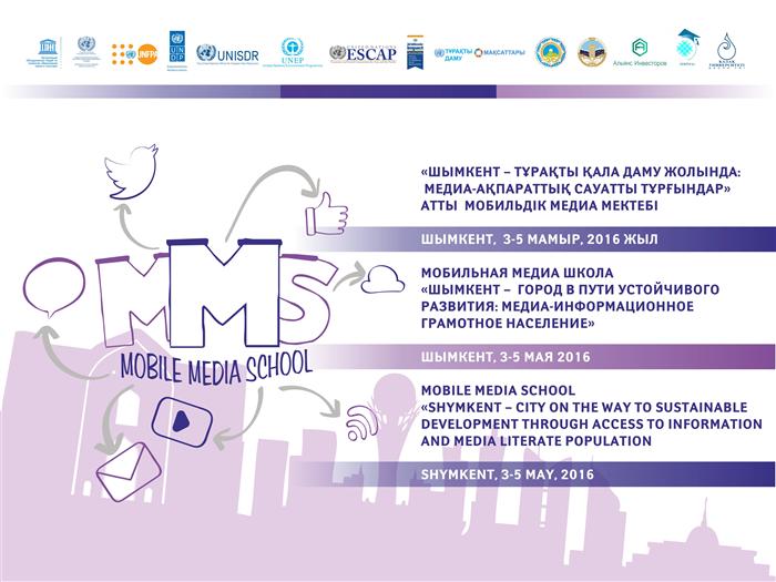 2016 жыл 3-5 мамыр аралығында Шымкент қаласы әкімі қолдауымен БҰҰ Тұрақты даму саласындағы мақсаттар аясында Бүкіләлемдік баспасөз күніне арналған «Шымкент – тұрақты қала даму жолында: медиа-ақпараттық сауатты тұрғындар» атты Республикалық мобильдік медиа мектебі өтеді.