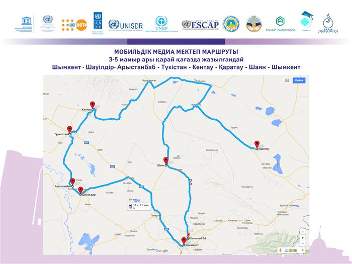 Медиа мектеп жұмыс бағыты: Шымкент – Шәуілдір – Арыстанбаб – Түркістан – Кентау – Шаян - Ақмешіт - Домалақ-Ана - Шымкент.