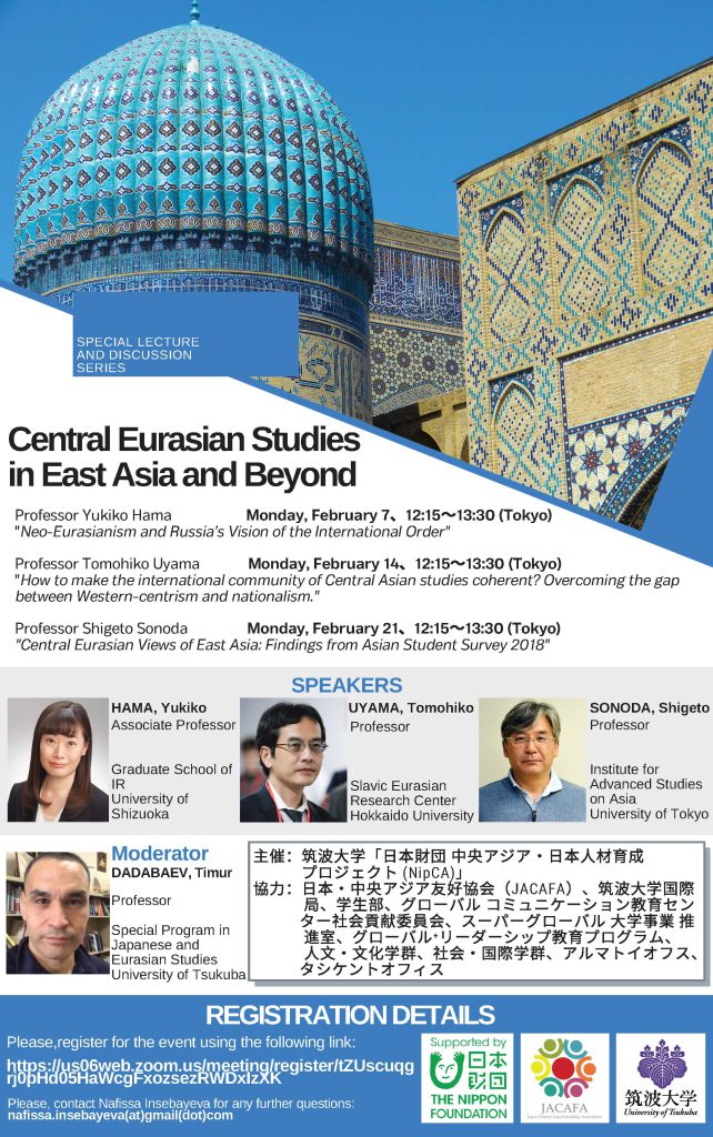 Цукуба университеті арнайы бағдарлама аясында 2022 жылдың 7, 14 және 21 ақпанында Жапония мен Еуразияны зерттеу мәселелері бойынша халықаралық конференция өткізеді. Конференция жұмысына халықаралық деңгейдегі дәріскерлер қатысады.