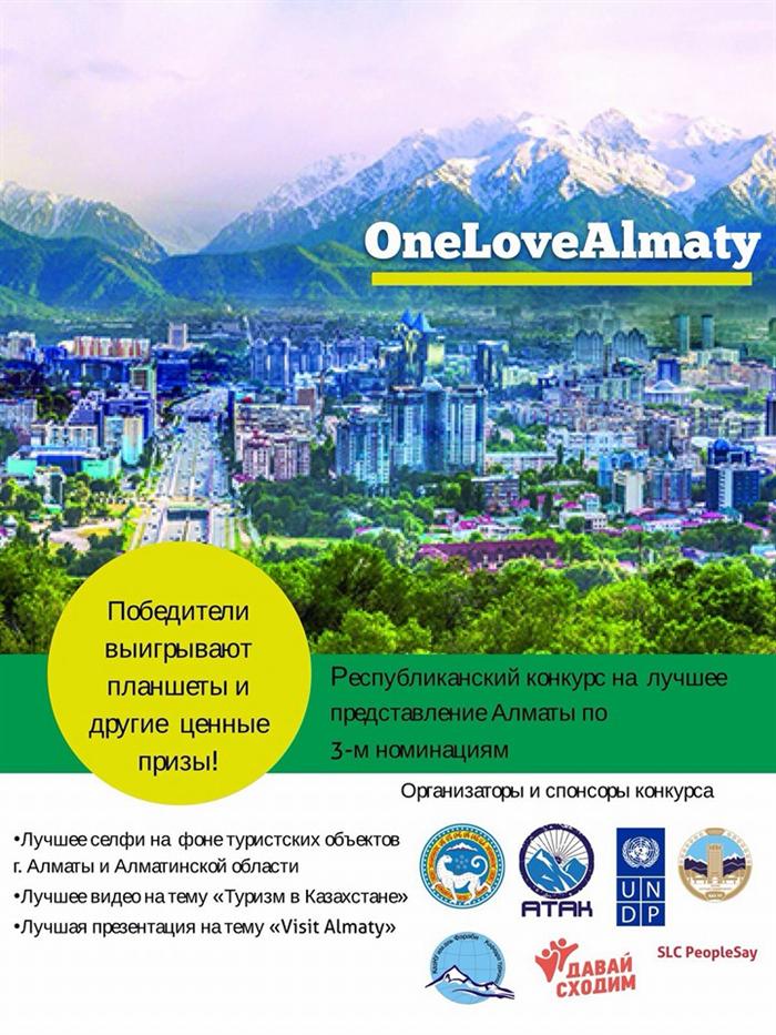 Алматы қаласы брендын дамыту аясында, Қазақстан туристік агенттіктерінің қауымдастығы, БҰҰ Даму бағдарламасы әл-Фараби атындағы ҚазҰУ-дың туризм кафедрасымен бірлесе отырып ұйымдастырылған «One Love Almaty» республикалық байқауының финалына шақырамыз!