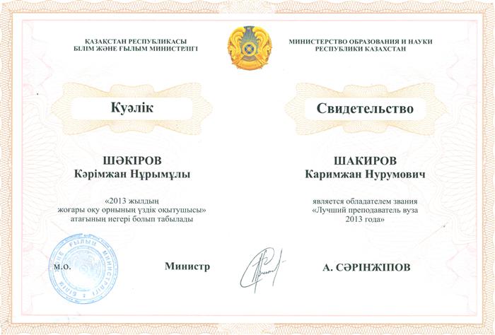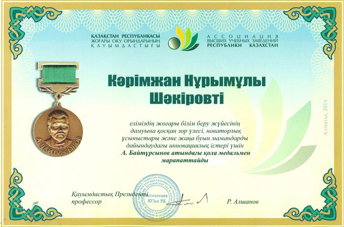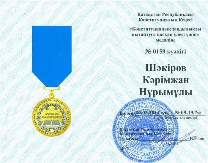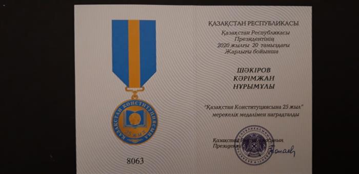 ҚР Президентінің 2022 жылғы 17 наурыздағы Жарлығына сәйкес халықаралық құқық кафедрасының профессоры, з.ғ.д. Кәрімжан Нұрымұлы Шәкіров "Ерен Еңбегі үшін" медалімен марапатталды |