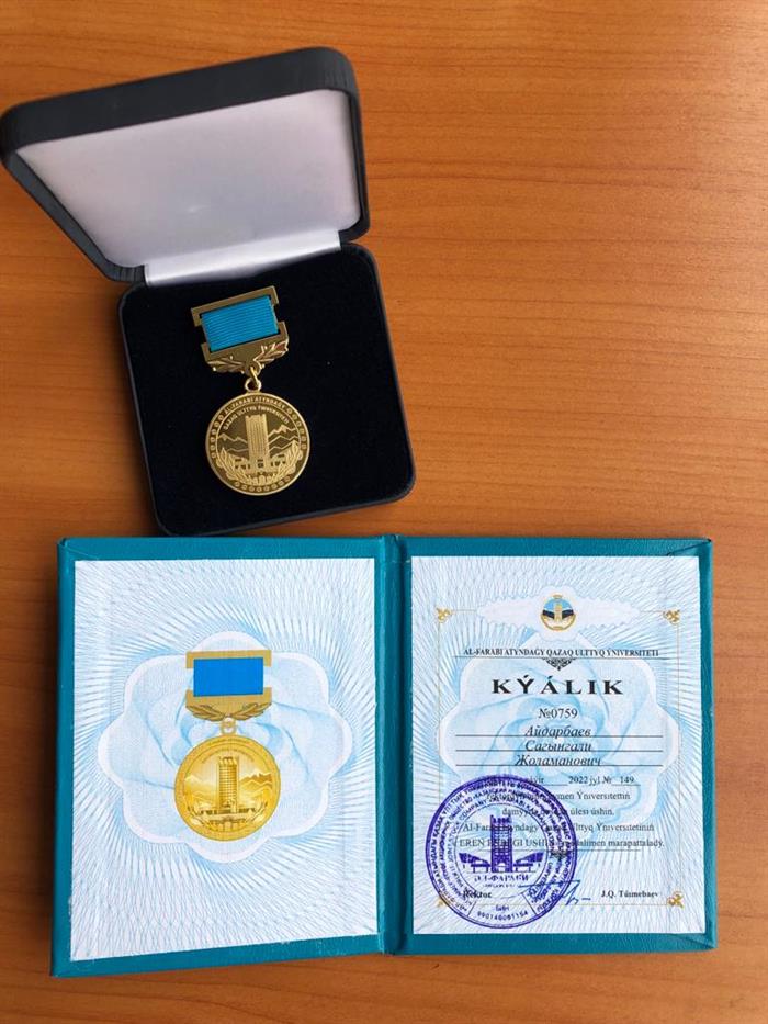 Ректордың 2022 жылғы 14 сәуірдегі №149 бұйрығына сәйкес, заң ғылымдарының докторы, доцент Айдарбаев Сағынғали Жоламанұлы әл-Фараби атындағы Қазақ ұлттық университетінің "Ерен еңбегі үшін" медалімен марапатталды |