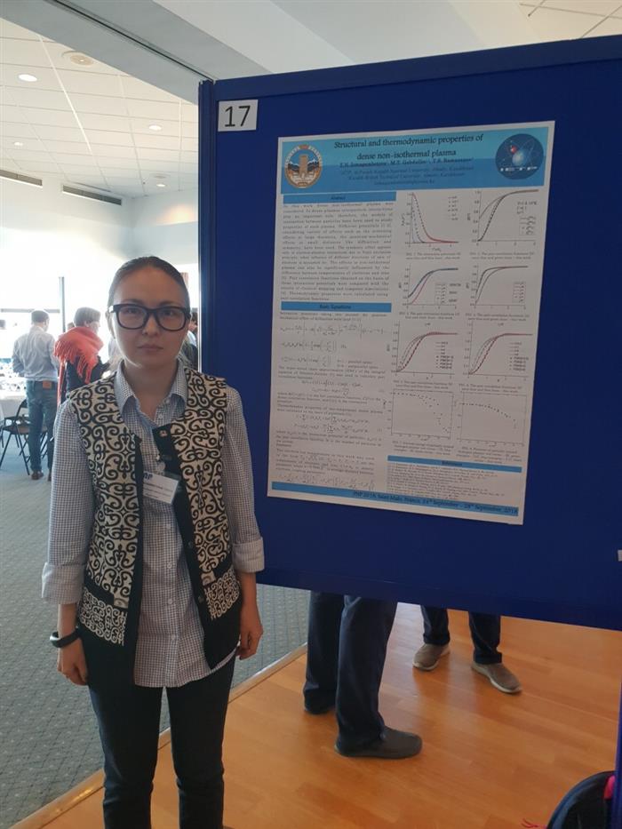 Физика-техникалық факультетінің плазма физикасы, нанотехнология және компьютерлік физика кафедрасының «6D060400-Физика» мамандығының 2 курс PhD студенті Исмагамбетова Томирис Нурланқызы «Екі температуралы тығыз плазманың термодинамикалық және оптикалық қасиеттері» тақырыбы бойынша шетелдік ғылыми тағылымдаманы 23.12.2018-14.12.2018 жж. аралығында Росток қаласында (Германия) өтті. |