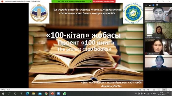 8 ақпан 2021 жылы шетел тілдері кафедрасының аға оқытушысы Махажанова Л.М. «Айналаңды нұрландыр» жобасы аясында «Қазақ тіліндегі 100 жаңа оқулық» тақырыбында іс-шара өткізді. Іс-шараға «Экономика және бизнес жоғары мектебі» факультетінің бірінші курс студенттері қатысты.