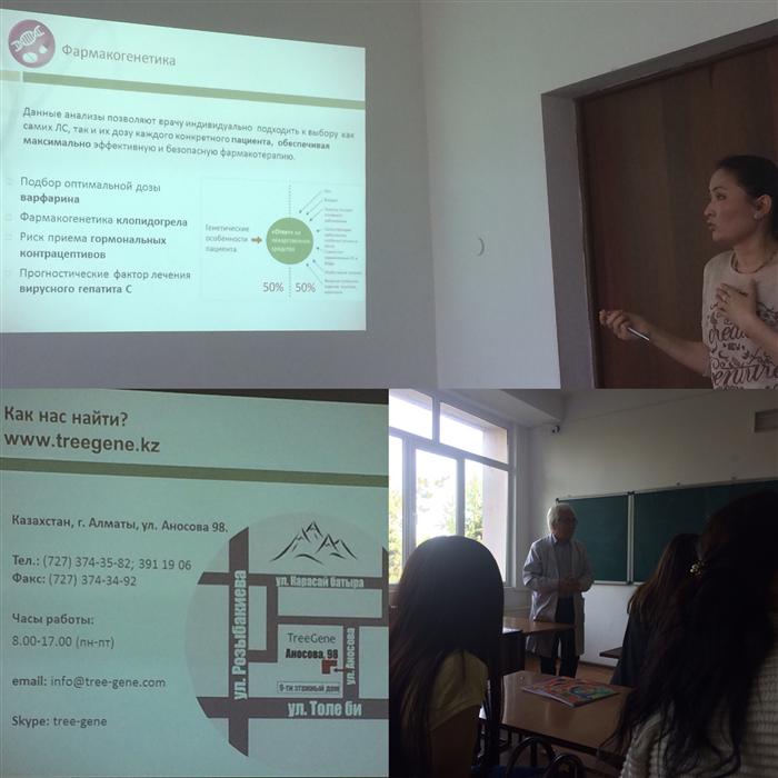 28 сәуір 2016 сағат 12.30 молекулалық биология және генетика кафедрасының 323 ауд. «Тұқым қуалайтын патологияның ПТР-диагностика» тақырыбында Алматықаласының «Tree Gene» генетикалық зертханамен таныстырылымы өтті. Ұйымдастырушылар: Калимагамбетов А.М., Джангалина Э.Д., Жұмабаева Б.А., Колумбаева С.Ж., Жүсіпова А.И.