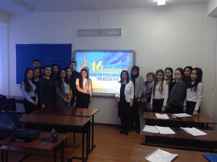 2016 жылы қазанның 30 - шы жұлдызында Биология және биотехнология факультеті, Биотехнология кафедрасы «Қазақстан Республикасының тәуелсіздігіне» арналған мерекелік іс - шара өткізді.