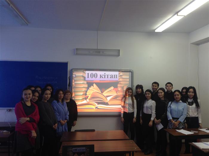 2 желтоқсан 2016 жылы сағат 17.30 Биология және биотехнология факультеті, Биотехнология кафедрасының «5В070100 - Биотехнология» мамандығының 1-3 курс студенттері “100 кітап” бағдарламасы аясында «Абайдың қара сөздері» тақырыбына арналған мәдени іс - шара ұйымастырды.