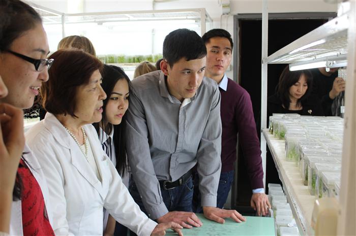 Студенттерді зертхана құрылымымен таныстыра отырып, ондағы заманауи құрал – жабдықтармен таныстырды. Сондай - ақ, ізденіс жұмыстарының өзектілігін және практикалық маңыздылығын айқындайтын жетістіктермен таныстырды. Ғылыми қызметкерлердің студенттерге оқыған дәрістерінде қант құмай өсімдігін биоэнергетикада, мал азығы мен тағам өндірістерінде, өсімдік шаруашылығында қолдану мақсатында оның физиологиялық және биохимиялық қасиеттерін зерттеу, ОШҚ жағдайында жүргізілген селекциялық жұмыстардың нәтижелері туралы шолу жасалды. Сонымен қатар, Оңтүстік және Шығыс Қазақстанда топырақтары пестицидтермен және ауыр металдармен ластанған жерлерді қалпына келтіруде қолданылатын фиторемидиациялық технологиялар және олардың тиімділігі туралы мәліметтер берілді. Гаплоидты технологияны және дәстүрлі селекцияны пайдалана отырып құрғақ және сортаң жағдайға бейімделген арпаның және күріштің жаңа сорттарын шығару мақсатында жасалып жатқан ғылыми ізденістер туралы айтылды. Сондай - ақ, әңгәме барысында Қазақстандағы жүзімнің экономикалық маңыздылығы бар сандық белгілерінің гендері мен гермоплазмаларының генетикалық әр түрлілігін молекулалық сәйкестендіру, алма және алмурт сорттарының молекулярлық - генетикалық паспортизациясын жасау, осы ағаштар генотиптерінің аса қауіпті ауруларға төзімділігін анықтау әдістері; маңызды ауыл шаруашылық дақылдарды генетикалық жақсарту үшін in vitro жағдайында басқарылатын морфогенез және клеткалық технология жүйесін жасау, морфогенез бен дифференциацияның цитофизиологиялық заңдылықтарын зерттеу мәселелері қарастырылды.