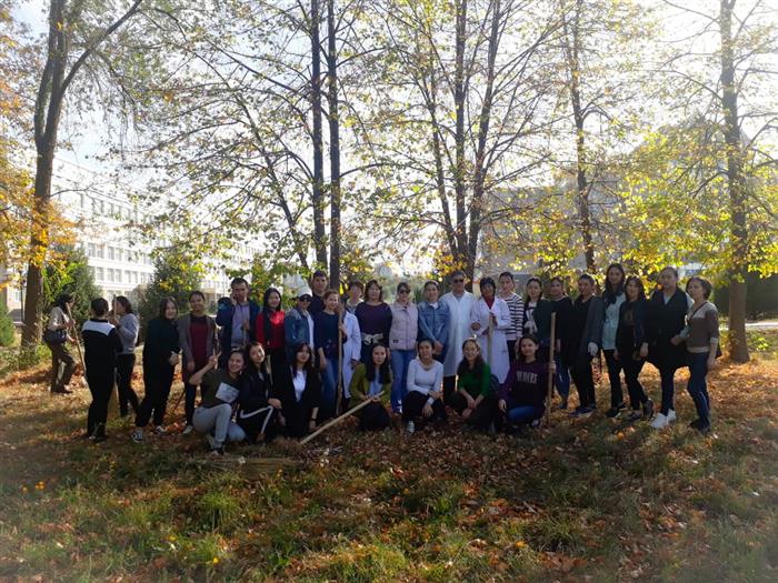 Әдеттегі дәстүр бойынша биофизика және биомедицина кафедрасының ұжымы студенттермен бірге 2018 жылдың 6 қазанында сенбілікке шықты. Күздің жаймашуақ күнінде кафедра ұжымы мен студенттері ҚазҰУ қалашығы аумағында күзгі тазарту жұмыстарын жүргізді.