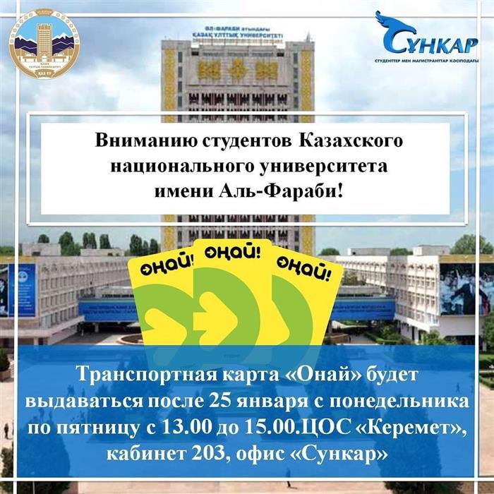 Назар аударыңыздар, құрметті студенттер! "Оңай" қоғамдық көлік картасы 25 қаңтардан кейін беріледі
