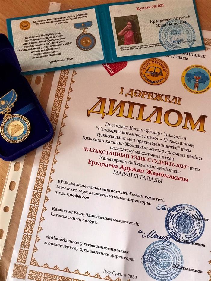 «Биотехнология» мамандығының студенті Аружан Ерғараева ҚР Президенті Қасым-Жомарт Тоқаевтың Қазақстан халқына Жолдауын жастар арасында кеңінен насихаттау мақсатында өткен «Қазақстанның Үздік студенті - 2020» атты Халықаралық Байқауының жеңмпазы (1-Дәрежелі Диплом) атанды.