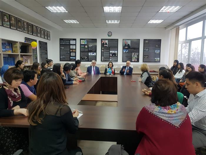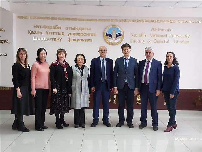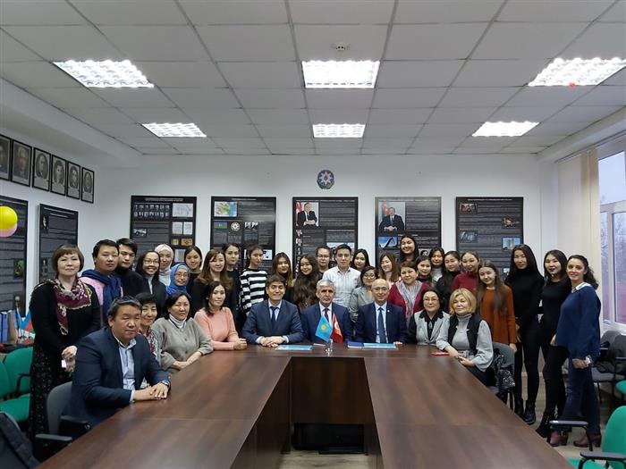 Түркия Республикасының негізін қалаған Мұстафа Кемал Ататүріктің бұйрығымен 1932 жылы құрылған «Түрік тілі ұйымының» басшысы, филология ғылымдарының докторы, профессор Гүрер Гүлсевин және Түркияның Қыршехир қаласындағы Ахи Евран университеті, әдебиет факульетінің деканы филология ғылымдарының докторы, профессор Надир Илхан әл-Фараби атындағы Қазақ Ұлттық университетінің Шығыстану факультетінде қонақта болды. Факультет деканы Ы. Палтөре және Түрксой кафедрасының меңгерушісі Ү. Қыдырбаева шетелдік ғалымдарды факультет тынысымен, кафедраның оқытушы-профессорлық құрамы, студенттер, магистранттар және докторанттармен таныстырып, «Түркі тілдерінің ортақ мәселелері және қолданыс аясы» тақырыбында дөңгелек үстел ұйымдастырды. «Түрік тілі ұйымының» басшысы Г.Гүлсевин дөңгелек үстелге қатысушылардың сұрақтарына жауап беріп, ұйымның негізгі мақсаты мен атқарылып жатқан жұмыстары туралы жан-жақты ақпарат берді. Сонымен қатар, осы ұйымның жарияланымдарымен таныстырып, алдағы уақытта түркі дүниесіне ортақ өзекті мәселелерді көтеретін ғылыми мақала жариялауға шақырды. Ахи Евран университеті, әдебиет факультетінің деканы Н. Илхан өз университетіндегі түркітану саласы бойынша атқарылып жатқан жұмыстары туралы айта келіп, болашақта екі университет арасындағы қарым-қатынас орнатудың тиімді жолдарын атап өтті.