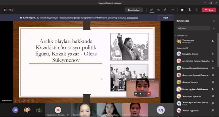 2020 жылдың 10-шы желтоқсан күні сағат 17.00-де Шығыстану факультеті ТҮРКСОЙ кафедрасының 1 және 2 курстардың ұйымдастыруымен Республикамыздың Тәуелсіздік күніне арналған демо-сабағы керемет тәсілмен және дәстүрлі емес стильде ұйымдастыруымен ерекшеленді.
