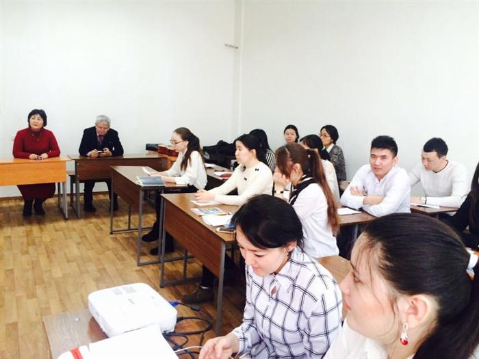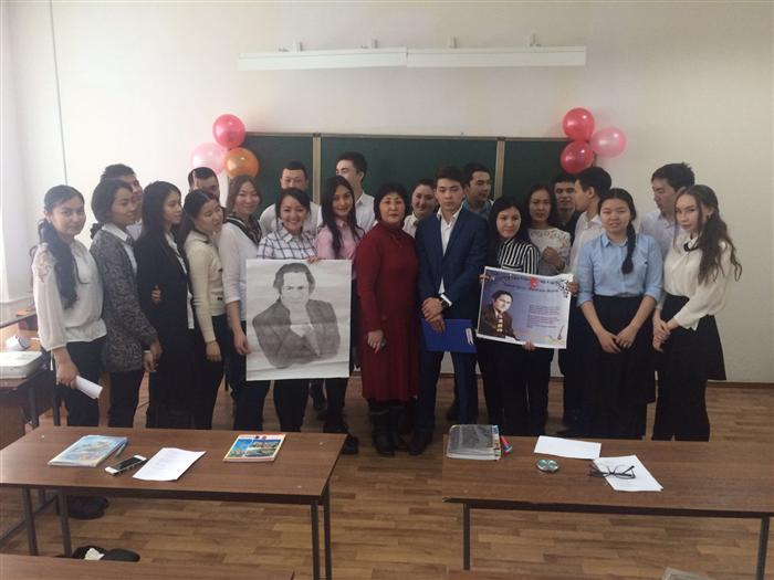 ДТжәнеБТ кафедрасының профессоры м.а. Жүнісова Ж.Х.студенттермен "100 кітап" жобасы аясында "Сағынады Мұқаңды сыздап жүрек" атты Мұқағали Мақатаевтың поэзиясына арналған ашық тәрбие сағат