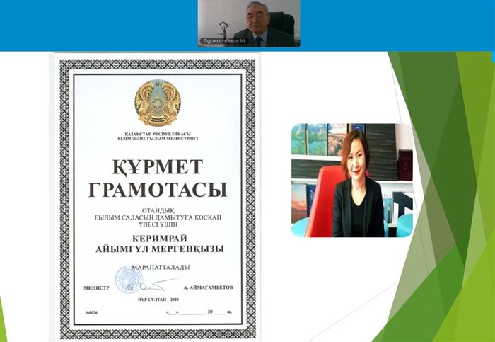 Аналитикалық, коллоидтық химия және сирек элементтер технологиясы кафедрасының аға оқытушылары Байматова Нәсиба және Керимрай Айымгүл "Отандық ғылым саласын дамытуға қосқан үлесі үшін" Министрдің Құрмет грамотасымен марапатталды.