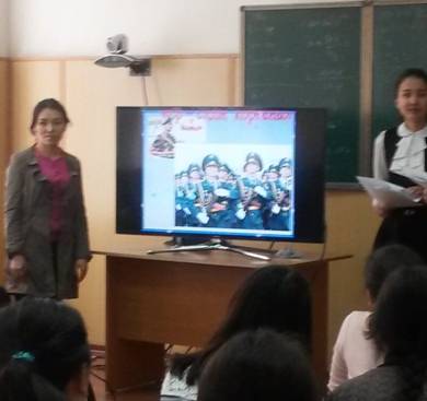 27.04.2017ж. «Отан қорғаушылар күні» 7 мамыр Отан қорғаушылар күніне арналған ашық курторлық сабақ өткізілді. (Жауаптылар: Кабдрахова С.С., Темірбеков А.Н., Закараянова Н.Б.)