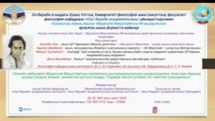 Биыл Мұқағали Мақатаевтың 90-жылдығы. Философия кафедрасы, «Кіші Фараби» академиясының ұйымдастыруымен М. Мақатаевтың 90-жылдығына арналған «Қазақтың ақиық ақыны – Мұқағали Мақатаев» атты республикалық конференция өтті. Іс-шараға ҚР Мәжіліс депутаты, белгілі қоғам қайраткері, ақын – Қазыбек Иса, ақын, халықаралық Жамбыл сыйлығының лауреаты – Нұрлан Әбдібеков, ҚР Көркем Академиясы академигі, киноактер, М. Мақатаев атындағы сыйлықтың иегері Шаяхмет Имашұлы, этнограф, Қазақстанның Еңбек сіңірген мәдениет қайраткері – Мақмұт Құлментегі, «Ақиқат» журналы Бас редакторының орынбасары, публицист – Дина Иманбаева, кафедра оқытушылары және студенттер қатысты. Қонақтардың мағыналы баяндамалары тыңдалып, ақынның өзінің және оған арналған өлеңдер оқылды, ақын өмірінің беймәлім тұстары мен поэзиясының құдіреті туралы сөз болды.
