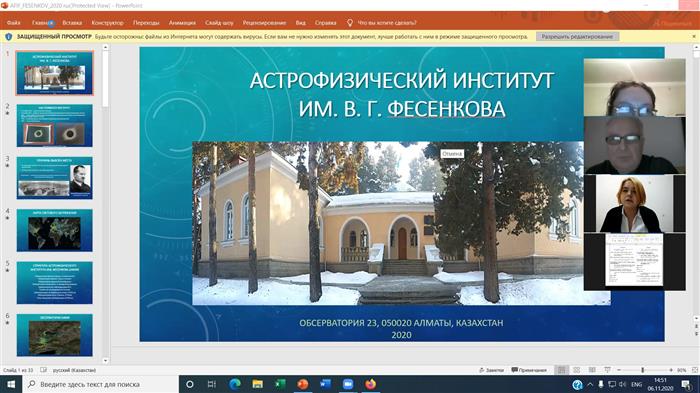 Карантин енгізілуімен бүкіл әлемдегі білім беру мекемелері қашықтықтан білім беру форматына көшті. Мұндай кенеттен ауысу бір жағынан оқушылар мен мұғалімдер үшін қиынға соқты, екінші жағынан, орта мектеп мұғалімдері мен университет оқытушылары арасында халықаралық білім беру телеконференцияларына жақсы негіз жасады. 6 қараша 2020 жылы филология және әлем тілдері факультетінің шетел тілдері кафедрасының оқытушылары: Махметова Д.М. және физика-техникалық факультетінің жұлдыздар мен тұмандықтар физикасы зертханасының инженері Гумарова Ш.Б, Измайлова Илдана № 73 Мәскеу мектебінің астрономия және физика мұғалімі Трунов И.В. ZOOM платформасында «Жұлдыздардың ғажайып әлемі» тақырыбында ғылыми-білім беру іс-шарасы өтті. Іс-шара жоба аясында өтті: Айналанды Нұрландыыр. Іс-шараға 8-сынып оқушылары және Әл-Фараби атындағы Қазақ ұлттық университетінің химия және химиялық технология факультетінің 1 курс студенттері қатысты.